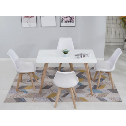This Eko elegant dining set is the perfect addition to your home, combining style and affordability in one package. The set comprises a generously sized dining table and four matching chairs, ensuring a comfortable and inviting dining experience for your family and guests