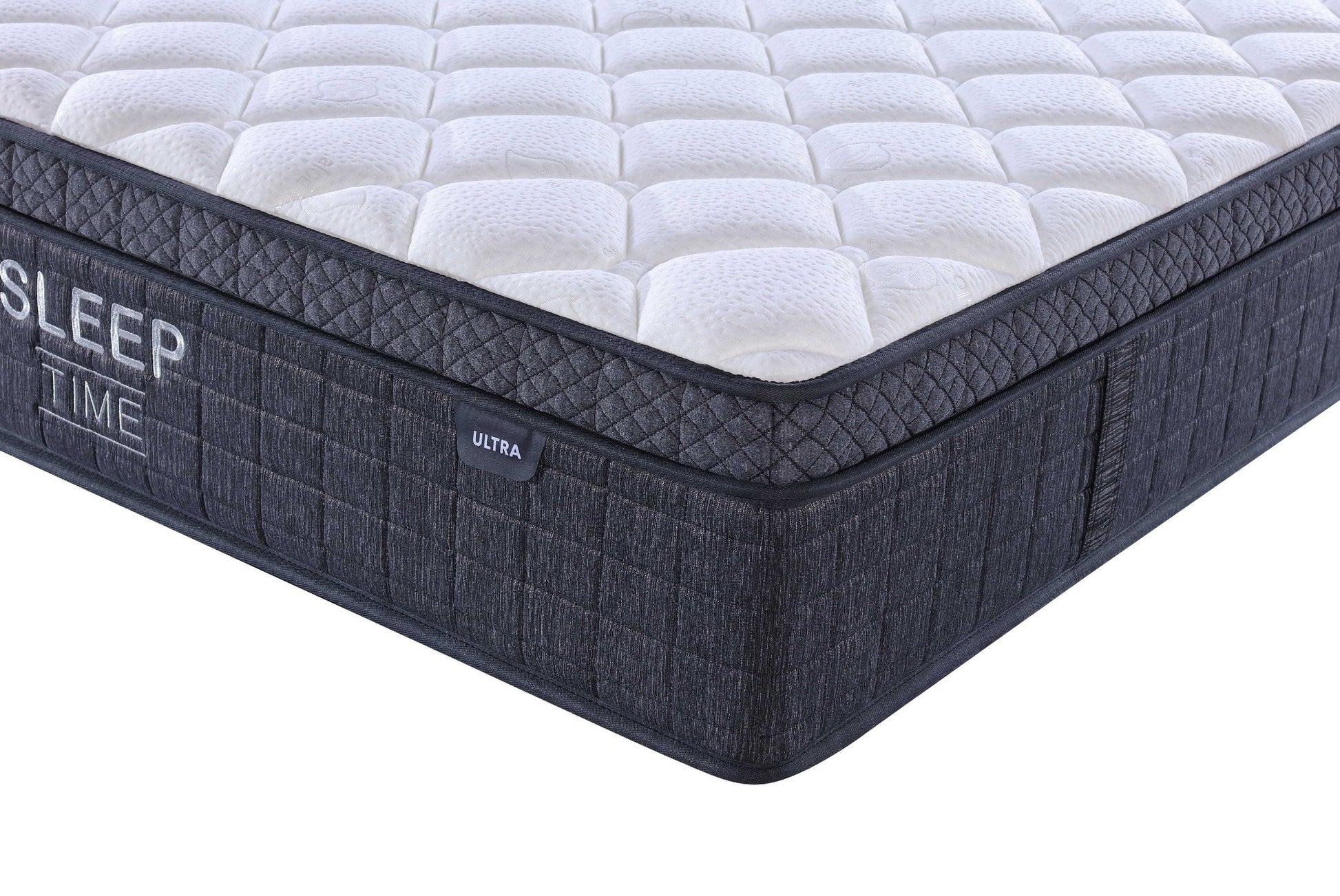 Indulge in premium comfort and support with the SleepTime Ultra Mattress. Engineered for an exceptional sleep experience, it features 7-Zoned Extra Hard pocket springs for stability and precise body alignment. The mattress is layered with Soft Foam for plush comfort and covered with breathable Knitting Aloe Vera Fabric for a refreshing and luxurious feel. Its innovative design reduces motion transfer, ensuring uninterrupted, restful sleep.